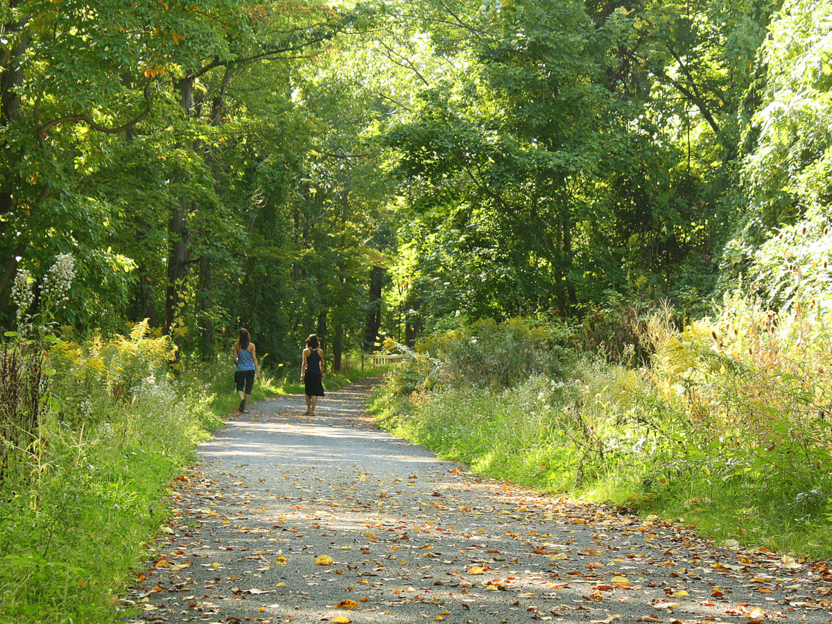Though evocative of a hazardous downhill ski run, the Black Diamond Trail is actually a broad, mostly level, multiuse trail — limited to cyclists, walkers, runners, cross country skiers, and snowshoers. Its stone dust surface makes the trail a pleasure to ride on or to stroll along in what is essentially a picturesque, eight-mile-long, tree-lined alleyway. First-time visitors should remember to double their mileage when planning out-and-back routes, while one-way trekkers may want to note that the grade slopes downward most of the way from Taughannock Falls State Park in Trumansburg to Cass Park in Ithaca.