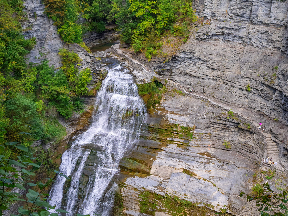 Like other gorge state parks, Robert Treman has a swimming area, campgrounds, and stunning waterfalls. The 115-foot Lucifer Falls is clearly central, and the handsome stonework winding up along the sheer cliff is equally remarkable. The dramatic waterscapes continue in the “upper gorge” area, and it is clear why visitors often linger in this stunning section. A beautiful stretch of the Finger Lakes Trail runs through Treman and the more adventurous hikers can follow the trail beyond Treman to Lick Brook Gorge and then all the way to Buttermilk Falls State Park.